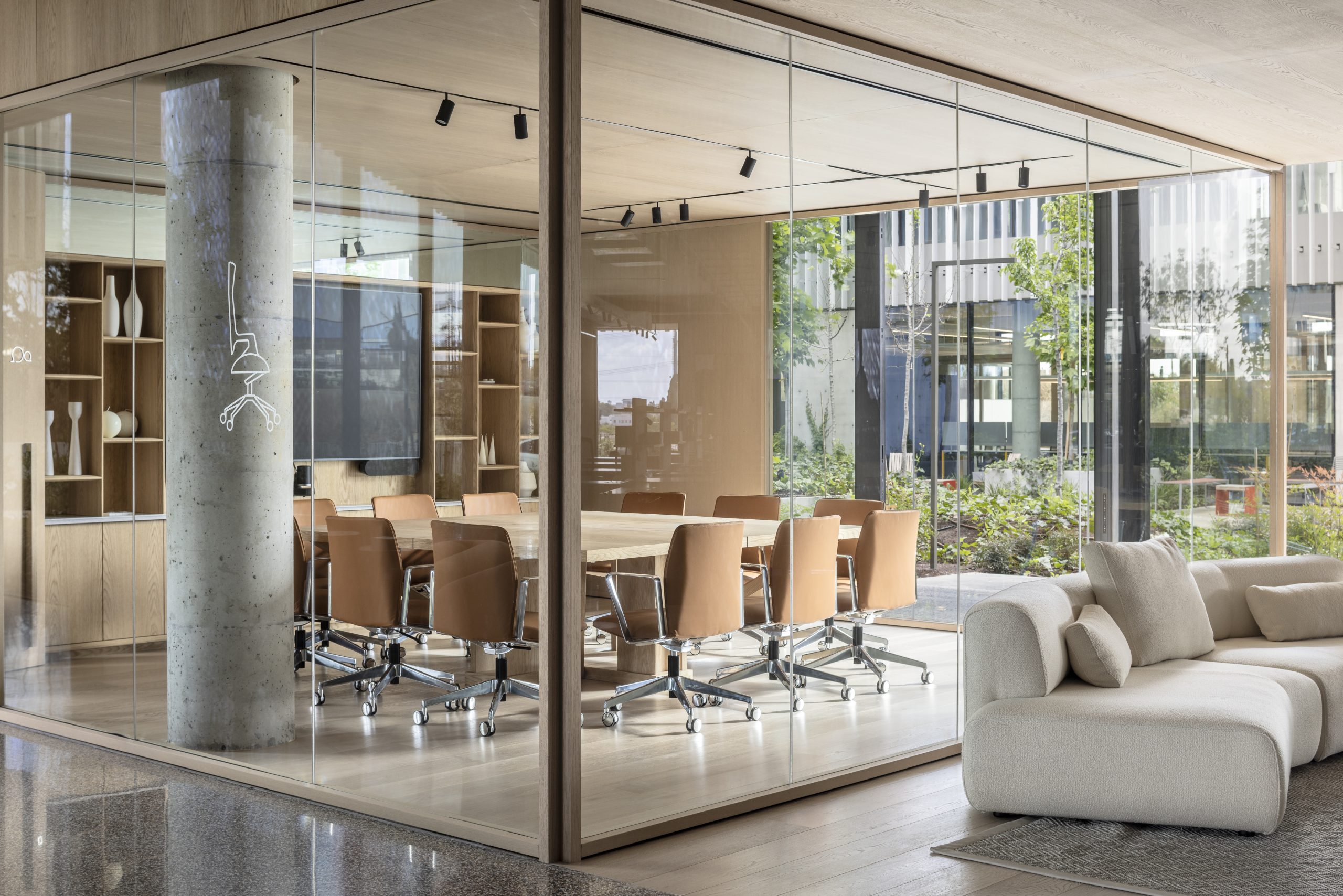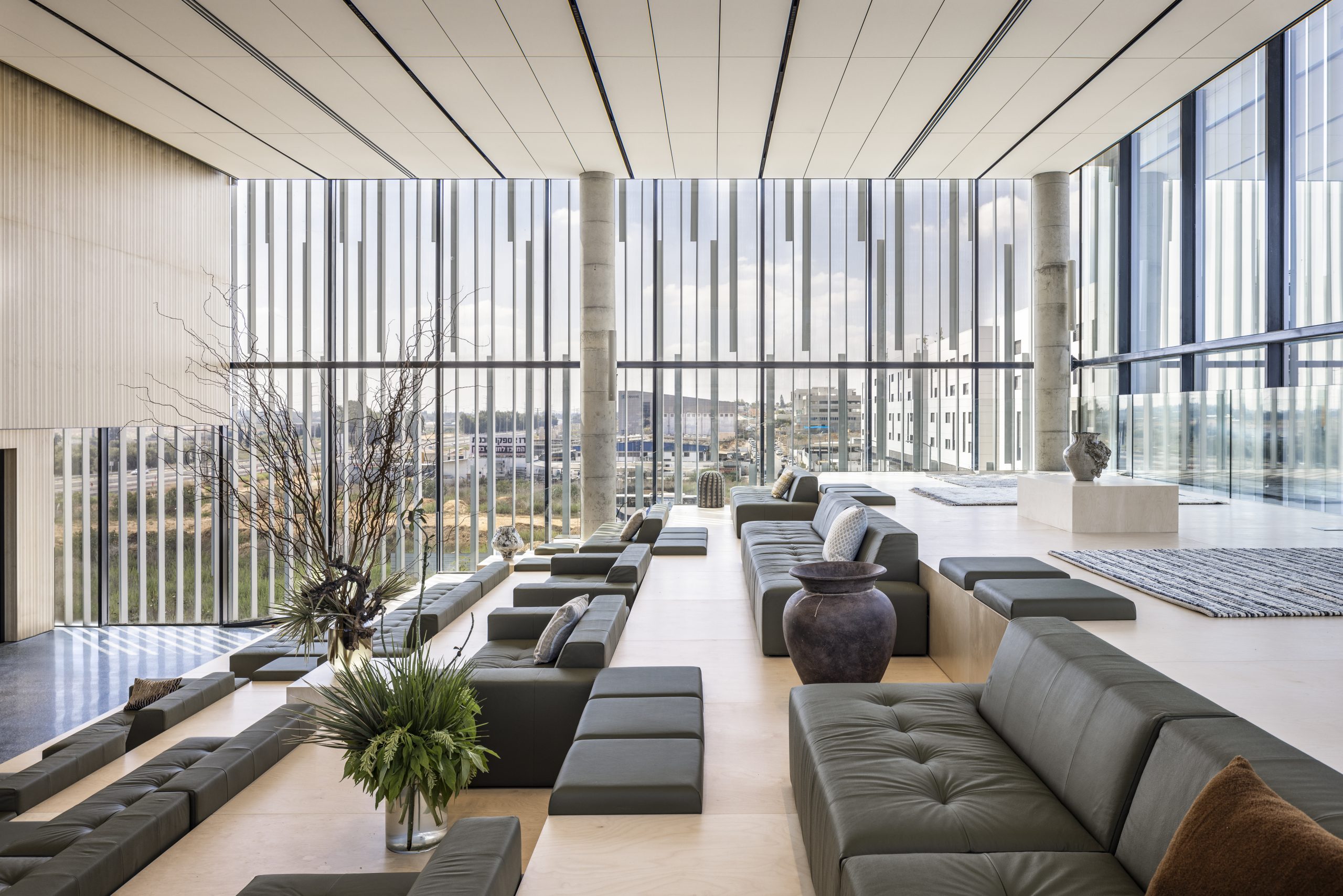 The project included managing the execution of all finishing works in the building, integrating advanced technical systems, and installing world-leading display systems. The building features offices in various configurations, meeting rooms, a gym, and an events auditorium surrounding a landscaped patio. The project is a sophisticated combination of a welcoming home for the company’s extensive operations and an active showroom for its products.