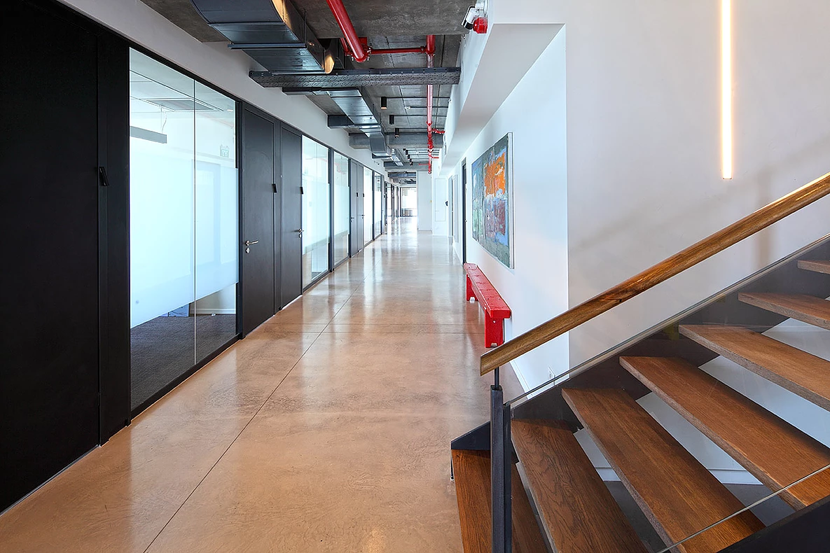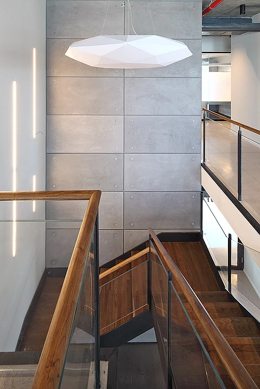 הקמת משרד עורכי דיון שכלל חיבור שתי קומות גבוהות באמצעות גרם מדרגות. שילוב של תכנון הנדסי קפדני בלוחות זמנים צפופים.
